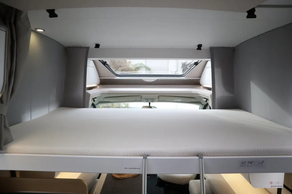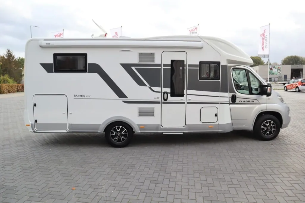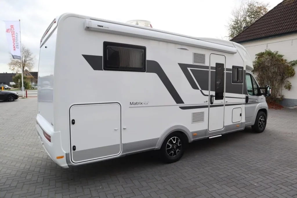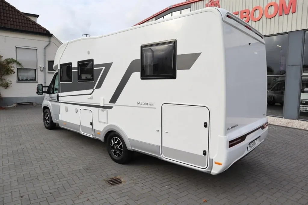 v=hjExBERhf88 .Beschikt over een sterke 140 pk Fiat Ducato Euro 6 Motor, waarmee u gemakkelijk mee komt in het verkeer, en ook bergritten vormen geen enkel probleem. De camper beschikt over 4 zitplaatsen en 4 slaapplaatsen, de 4 slaapplaatsen worden gevormd door een groot queensbed voor 2 personen dat zich achterin in de camper bevinden (lengterichting), en een 2-persoons hefbed welke via elektrische bediening op slaaphoogte zakt. De ruime douche en toiletruimte zit voor het Queensbed gesitueerd. Het toilet en douche biedt luxe en comfort en beschikt o.a. over een douchecabine, wastafel, toilet en opbergruimte. Het woon/leef gedeelte is ruim opgezet en voorzien van een luxe midden-keuken, met een wasbak, 3 pit gasstel en voldoende opbergruimte. Naast het comfort wat de camper u standaard al biedt beschikt de Matrix ook over tal van opties die enorm bijdragen aan het leef en rij comfort. Denk aan: een groot panoramisch uitsteldak, ramen en dakluiken met hor en verduistering gordijnen, hordeur, luchtvering, cruise control, ruime koelkast met vriesvak 230v / 12v / gas, motorairco, 6 versnellingen, een luifel, 2 bijzonder luxe (volledig draaibare) stoelen voor chauffeur en bijrijder, multimedia systeem met navigatie/radio/camera/bluethooth, dakairco, en een trekhaak waar een fietsenrek op kan (deze kunt u erbij huren, of als u er zelf 1 heeft kan u die meenemen). De camper staat in Rogat op u te wachten en staat garant voor een fijne vakantie
